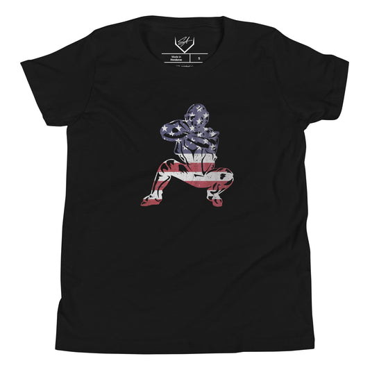American Flag Baseball Catcher - Youth Tee